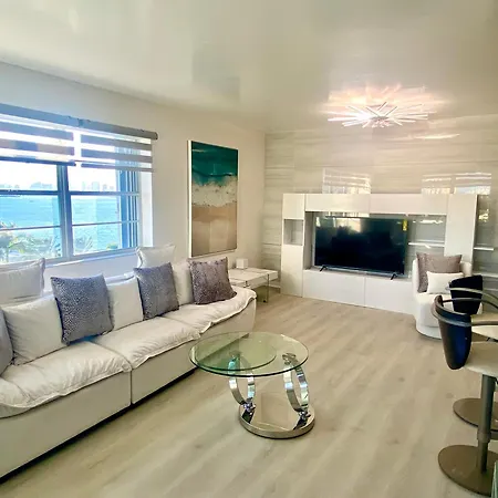 Panoramic Luxurious Waterfront One Bedroom Apartment With Miami Skyline View Free Parking 5Min Drive To Miami Beach comprend une terrasse et est situé à environ 400 mètres de l'île Pelican. Un Wi-Fi et un parking privé gratuit sont également disponibles dans la résidence spacieuse.